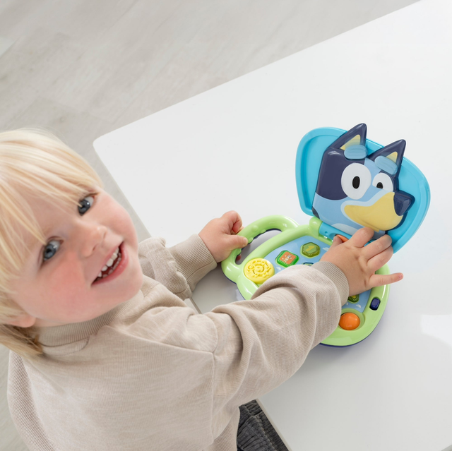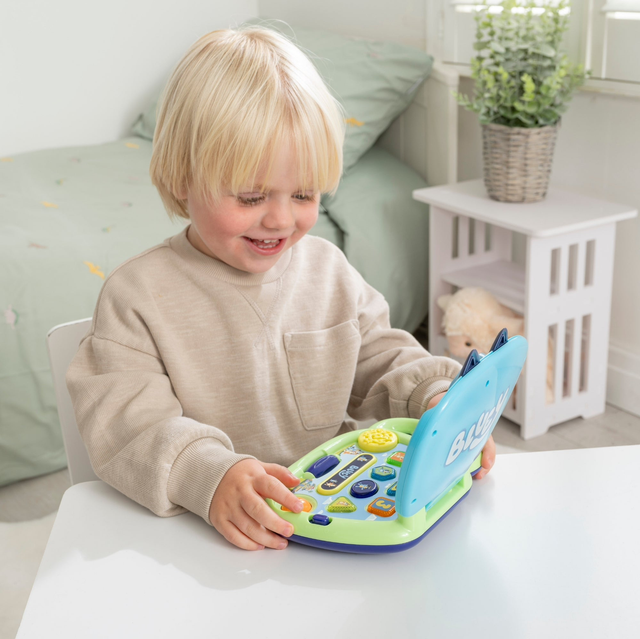 Blueys fun interactive laptop can help children identify colours alongside noise creativity. The Bluey My First Laptop allows little ones to explore interactive buttons to boost hours of fun.