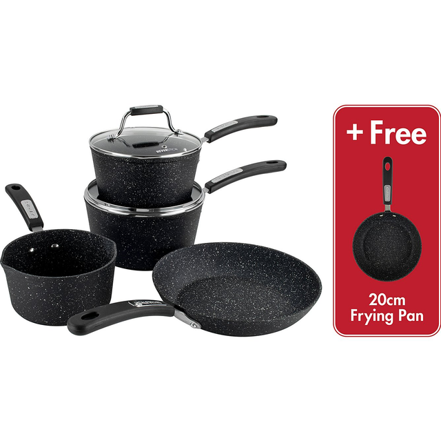 This 5 piece Scoville cookware set is perfect if you’re just starting out in a new kitchen or as a gift. With a milk pan, two saucepans, 24cm frying pan and a free 20cm frying pan this set is the essential and most affordable way to introduce Neverstick to your home. This set radicalises the way you cook by featuring Neverstick, the latest innovation in non-stick technologies. Neverstick lets you cook without butter, fats and oil without food sticking to the pan, making washing-up easier too! With its high-grade aluminium body and stainless steel base: Scoville Neverstick is resilient and achieves superbly even heat distribution for a perfectly cooked meal every time. No more burnt bits stuck at bottom of the dish a quick soak in soapy water and the washing-up is done! We are so proud of Neverstick that this Scoville set comes with a lifetime guarantee!!